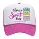 100% Polyester Front 100% Polyester Mesh Back The Traditional Look 5-panel cap Seamless Foam Front Panel with Lining Matching Color Braid 8 Rows Stitching on Visor Matching Fabric Undervisor Matching Color Sweatband Plastic Adjustable Snap